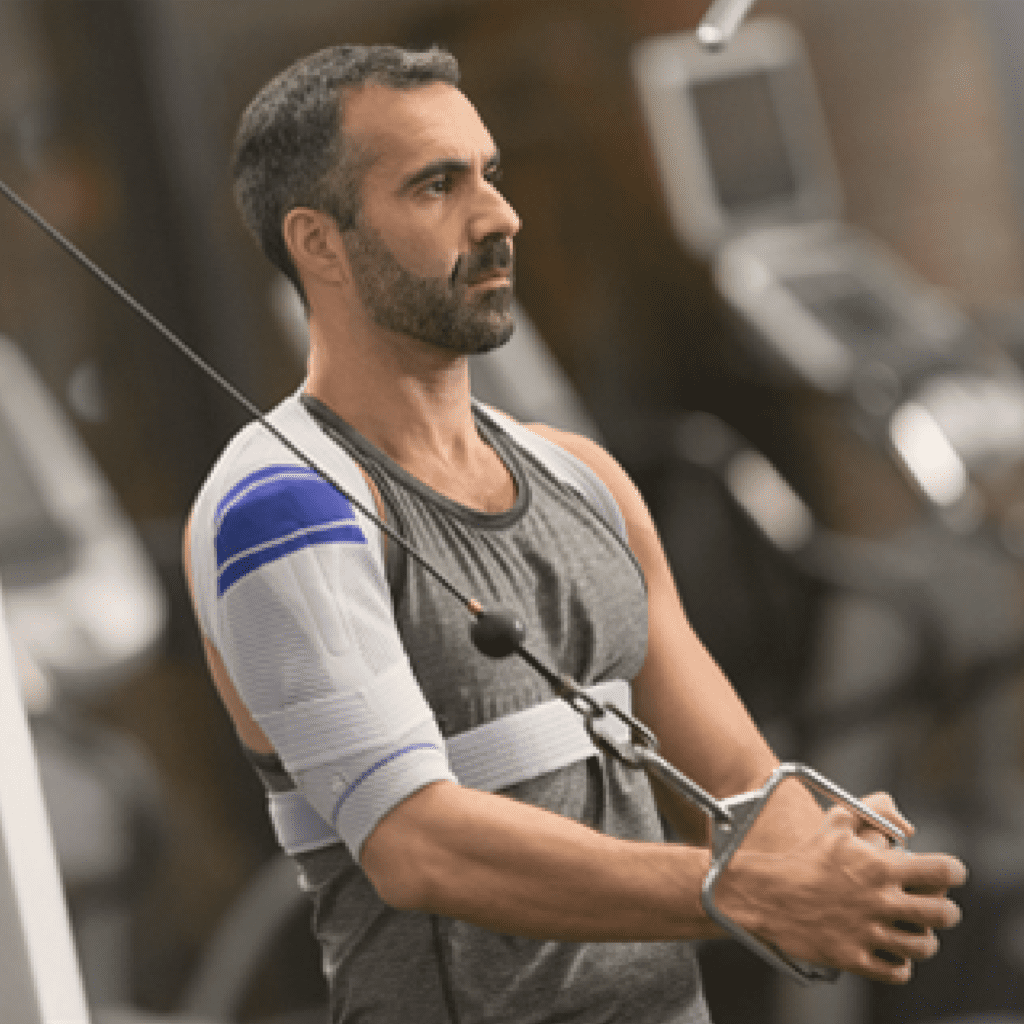Bauerfeind’s OmoTrain braces have a unique design that guides and centers the arm in the socket so the shoulder maintains proper natural movement without impacting mobility. The support is easy to put on and take off thanks to its high elasticity, and it is secured to your upper body with a soft strap.